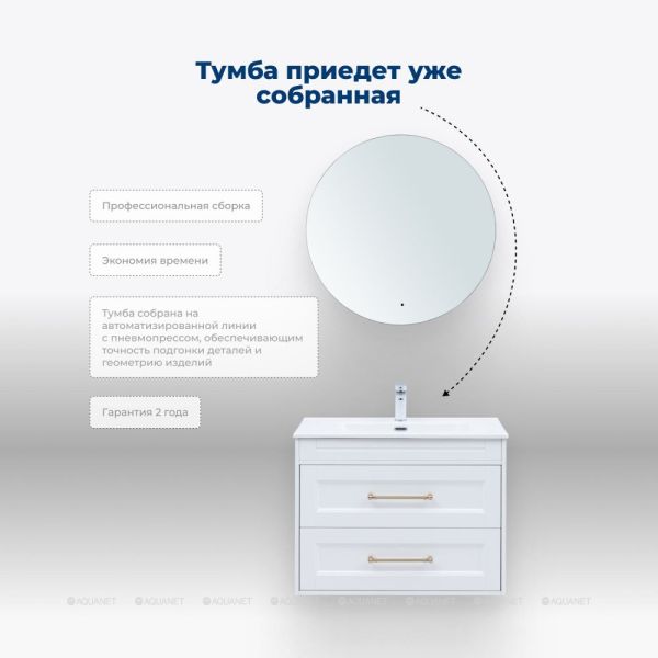 Тумба под раковину Aquanet Бостон new 80 белый сатин