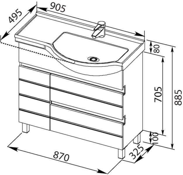 Широкая напольная тумба стильного набора мебели для ванной комнаты Акванет Доминика в стиле «модерн» может являться самостоятельным предметом ванной комнаты. Чистый белый цвет, оригинальные детали – ручки в виде заглубленного в фасады профиля и ритм, создаваемый горизонтальными элементами отделки – подчеркивают неординарность и экзотичность. Функциональная часть напольной тумбы представлена двумя вместительными ящиками и боковыми отделениями на распашных дверцах.Широкая площадка у смесителя позволит разместить необходимые мелочи так, чтобы они всегда были под рукой.