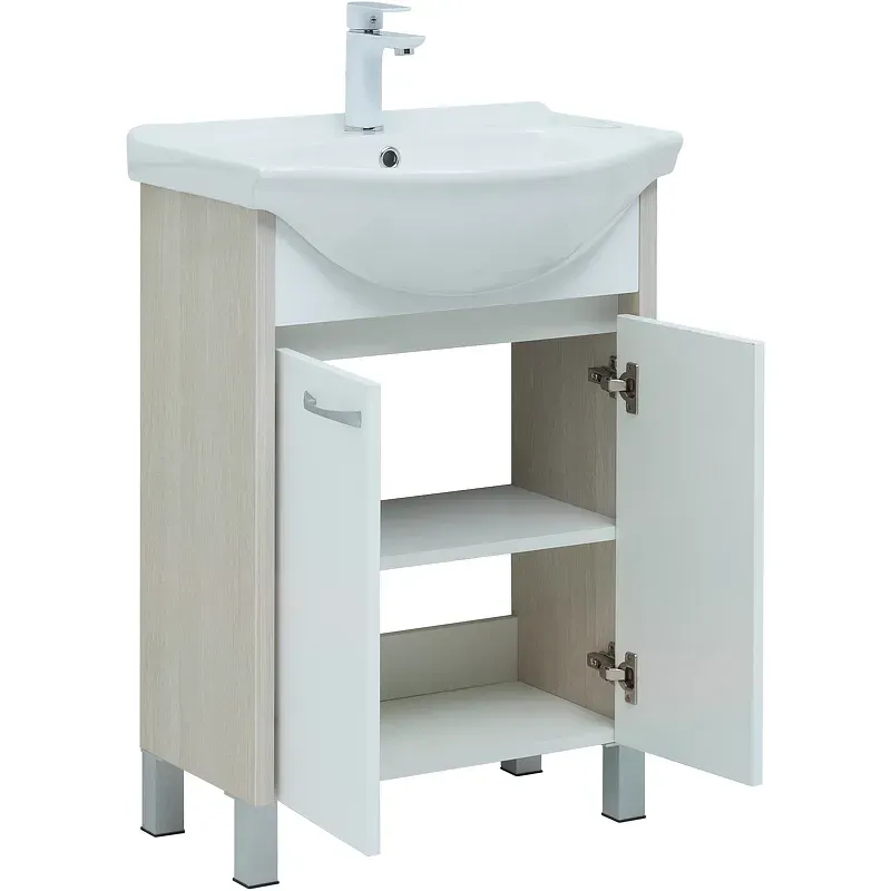 Тумба под раковину Aquanet Донна 273996 60 см белый глянец/белый дуб