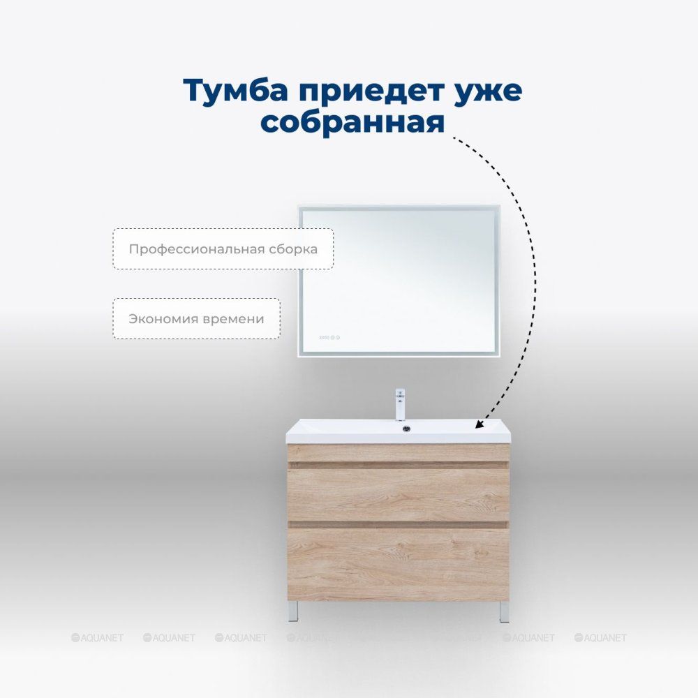 Тумба под раковину Aquanet Нота New 100 дуб светлый