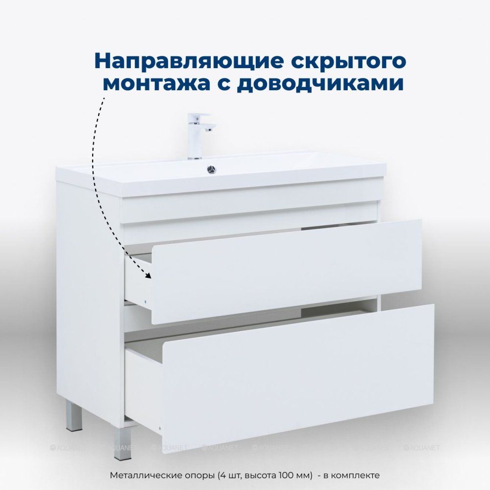 Тумба Aquanet Нота New 100 – это идеальное сочетание эстетики, функциональности и надежности для вашей ванной комнаты.