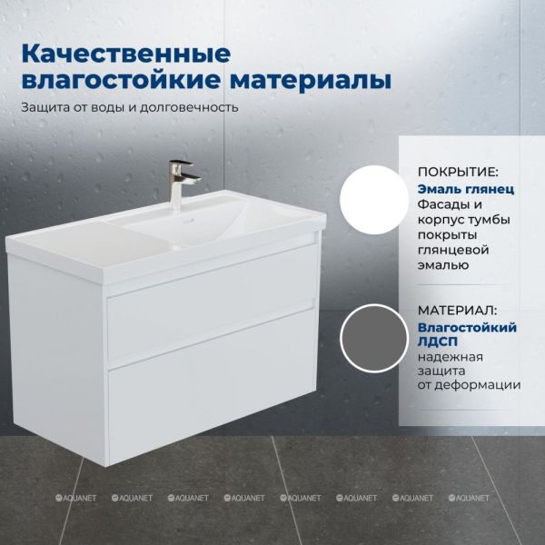 Тумба под раковину Aquanet Nova Lite 2.0 100 в белом цвете с глянцевым покрытием станет практи... Подробнее