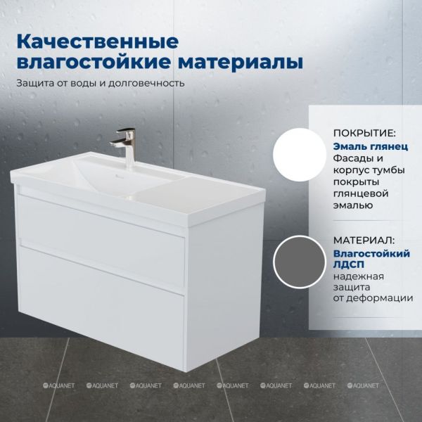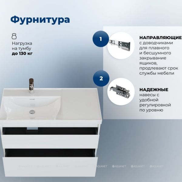 Тумба под раковину Aquanet Nova Lite 2.0 100 в белом цвете с глянцевым покрытием станет практичным дополнением ванной комнаты. Ее лаконичный дизайн сочетается с разными стилями интерьера — от минимализма до классики.