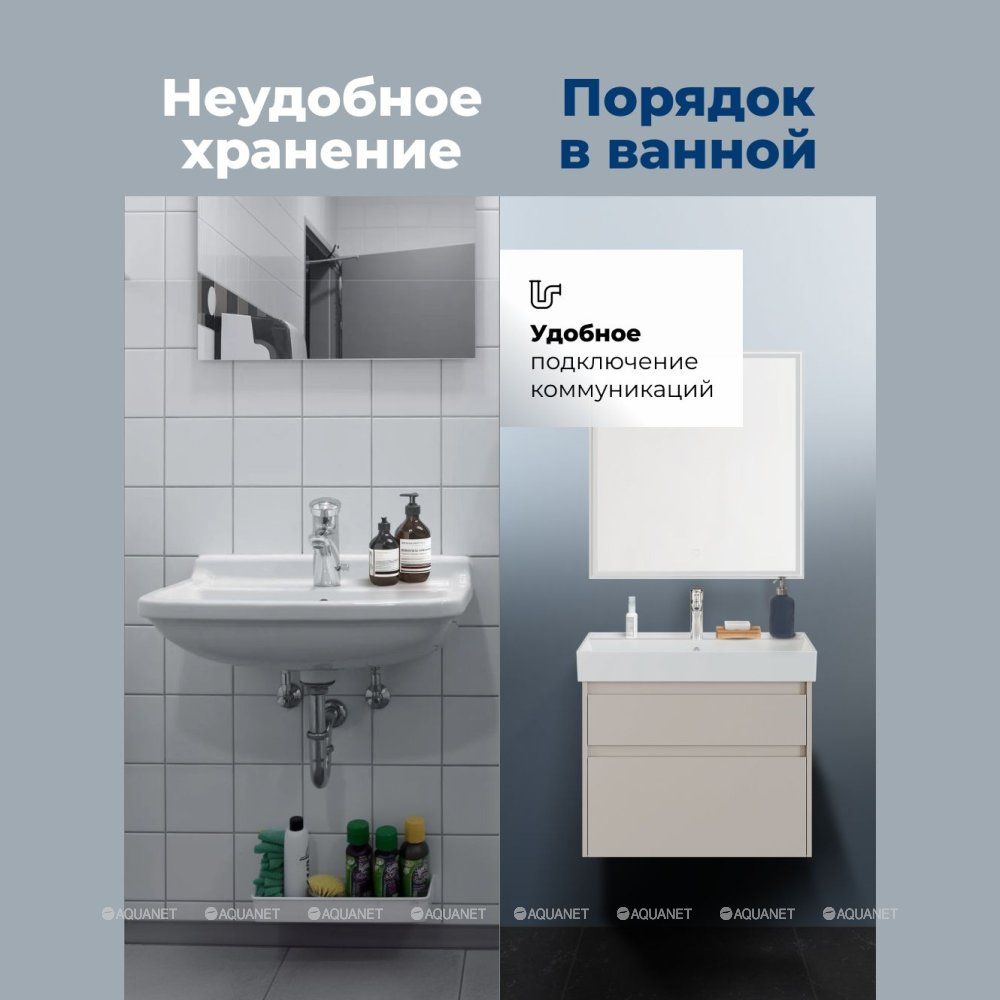 Тумба под раковину Aquanet Nova Lite 2.0 75 бежевый Компактная и стильная тумба под раковину... Подробнее
