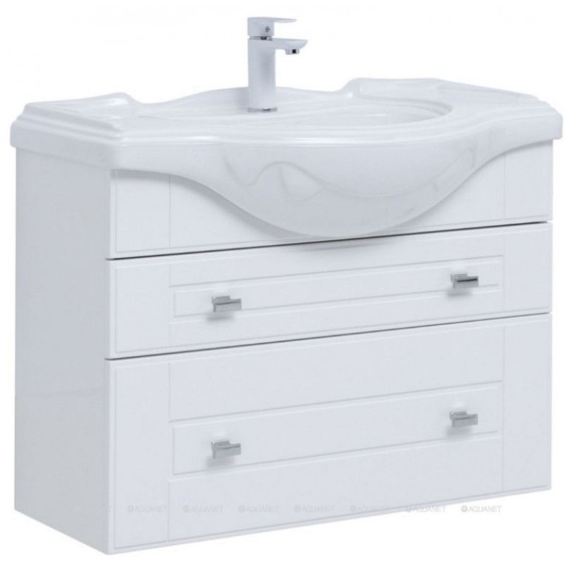 Тумба с раковиной Aquanet «Рондо» 85 в белом глянцевом корпусе оснащена двумя ящикам... Подробнее