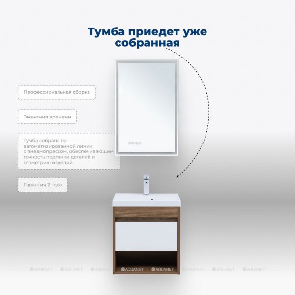 Тумба под раковину Aquanet Тренд 50 дуб рустикальный/белый сатин: Изысканное сочетание функциональности и современного дизайна.