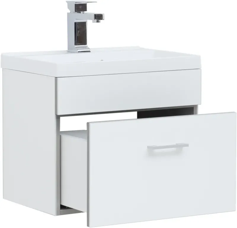 Тумба под раковину Aquanet Верона 50 (подвесная, 1 ящик) белого цвета с отделкой из качественног... Подробнее
