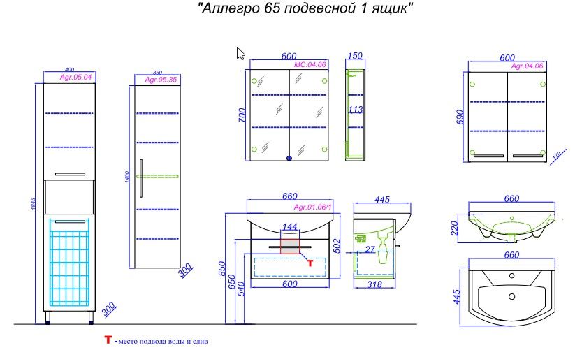 Тумба под раковину Aqwella Аллегро 65 Agr.01.06/1