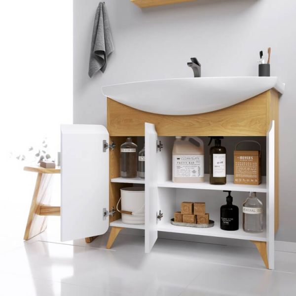 Тумба под раковину Aqwella Basic BAS0108DZ 85 смНапольная тумба 85 см с тремя дверцами с умывальником