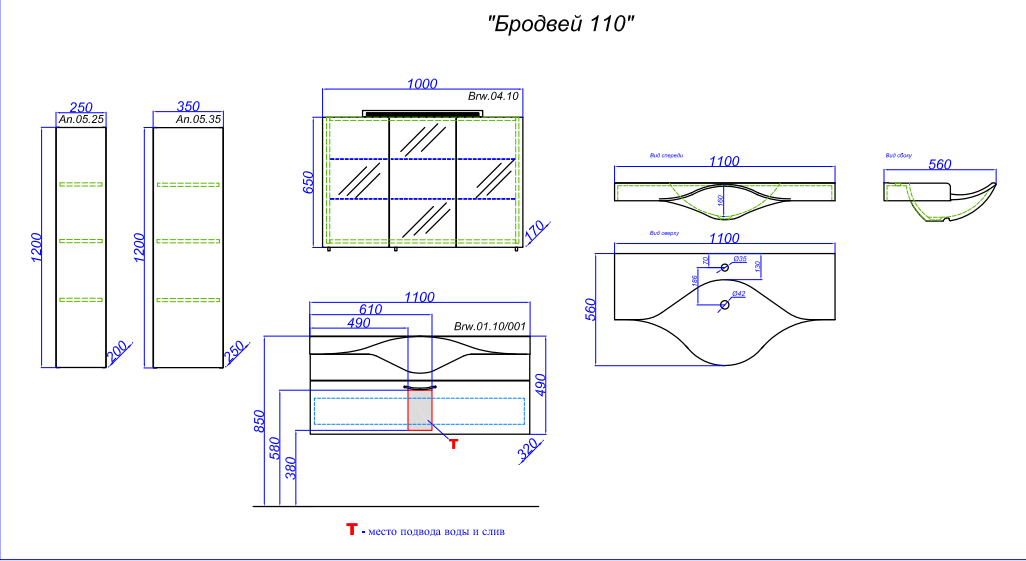 Ширина 110смВысота 40смГлубина 32.5смAqwella - это мебель для ванной премиум-класса.