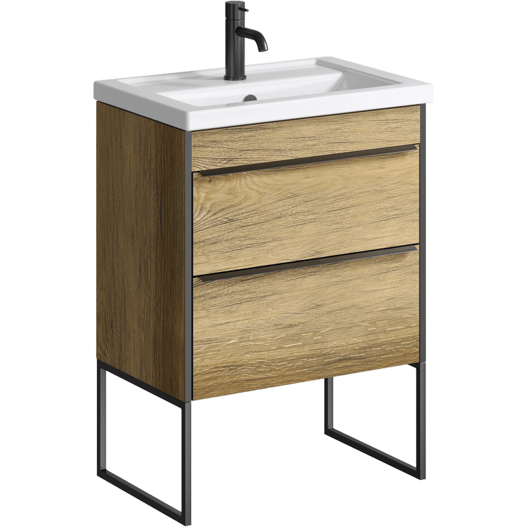 Тумба под раковину Aqwella Fargo FRG0106DB+FRGN380 60 смНапольная тумба в цвете дуб балтийский с двумя ящиками с умывальником