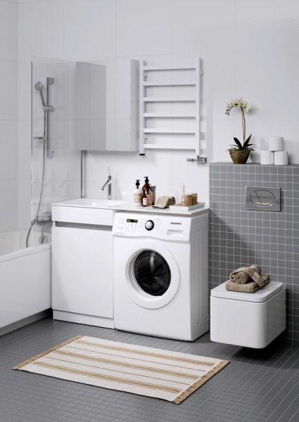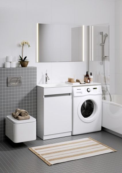 Forma напольная тумба с бельевой корзиной слева и двумя отсеками для хранения хозяйственных принадлежностей с умывальником с крылом под стиральную машинку 115 см