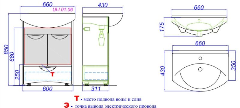 Тумба под раковину Aqwella Ультра Люкс 65 Ul-l.01.06