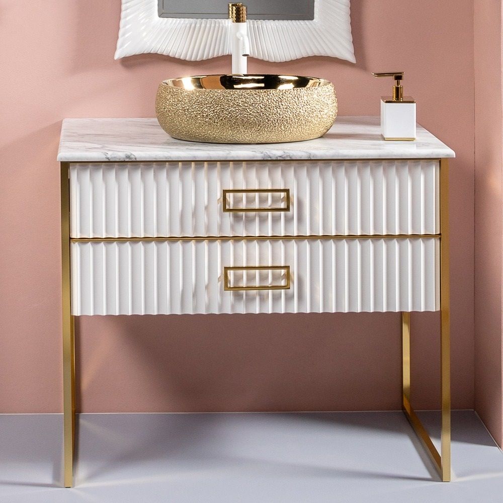 Тумба под раковину Armadi Art Monaco 100см белый/золото 867-100-WG