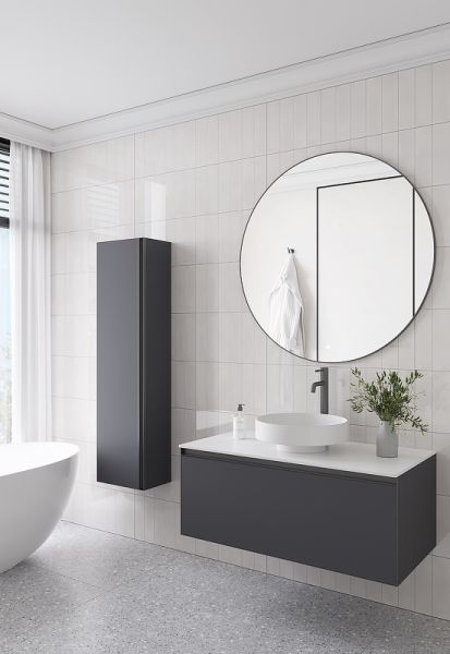 Мебель ArmadiArt Quatro идеально дополняется зеркалами Boheme с обрамлением из алюминия в цветах ручек мебели: графит, матовое золото, матовый черный, хром.