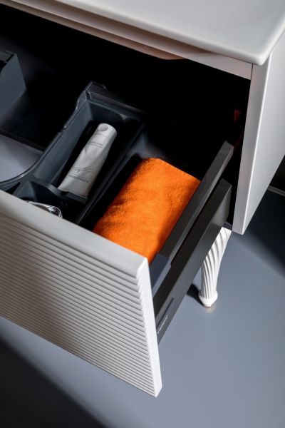 Тумба для комплекта Armadi Art Vallessi Avangarde восхитительно подойдет как для просторной ванной комнаты, так и для небольшого помещения. Подвесной способ установки дает возможность не только визуально увеличить пространство, но и обеспечивает быстрый и удобный доступ для уборки.В производстве используют только качественные влагостойкие материалы (МДФ), в составе которых полностью отсутствуют опасные вещества. Серия Vallessi Avangarde отличается превосходным дизайном с соблюдением всех важных элементов современного стиля. Основным цветом, в котором выполнена тумба под раковину Armadi Art Vallessi Avangarde является белый, гармонирующий с большинством интерьерных решений. Тумба под раковину предусматривает удобную и вместительную систему хранения, состоящую из ящиков. Качественные доводчики позволяют обеспечить мягкое и тихое закрывание. Ключевые габариты изделия: ширина 80 см, глубина 46 см, высота 53 см.Страной бренда Armadi Art является Италия, все товары производятся с выполнением соответствующих стандартов качества, что позволяет быть полностью уверенными в долговечности и надежности. Тумба для комплекта Armadi Art Vallessi Avangarde правильный выбор в современном дизайне ванной, придающий уникальность всему помещению, при этом сохраняя функциональность.
