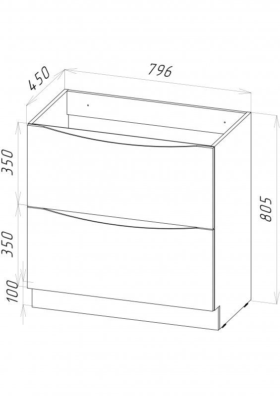 Дополнительная информация: база оснащена доводчиками, ручки скрыты в плоскости фасада, раковина сифоном не комплектуется
