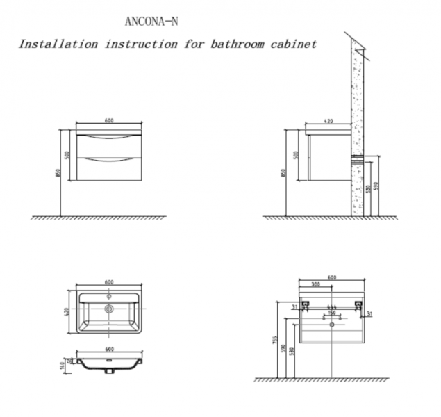 Тумба под раковину BelBagno подвесная 60x45см Bianco Lucido ANCONA-N-600-2C-SO-BL купить