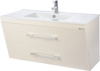 Тумба Bellezza Берта шириной 100 см в бежевом глянцевом исполнении — это гармоничное сочетание современного дизайна, практичности и европейского качества материалов. Модель с интегрированной раковиной и двумя вместительными ящиками предлагает продуманную организацию пространства, делая ежедневные ритуалы комфортными и эстетически приятными.