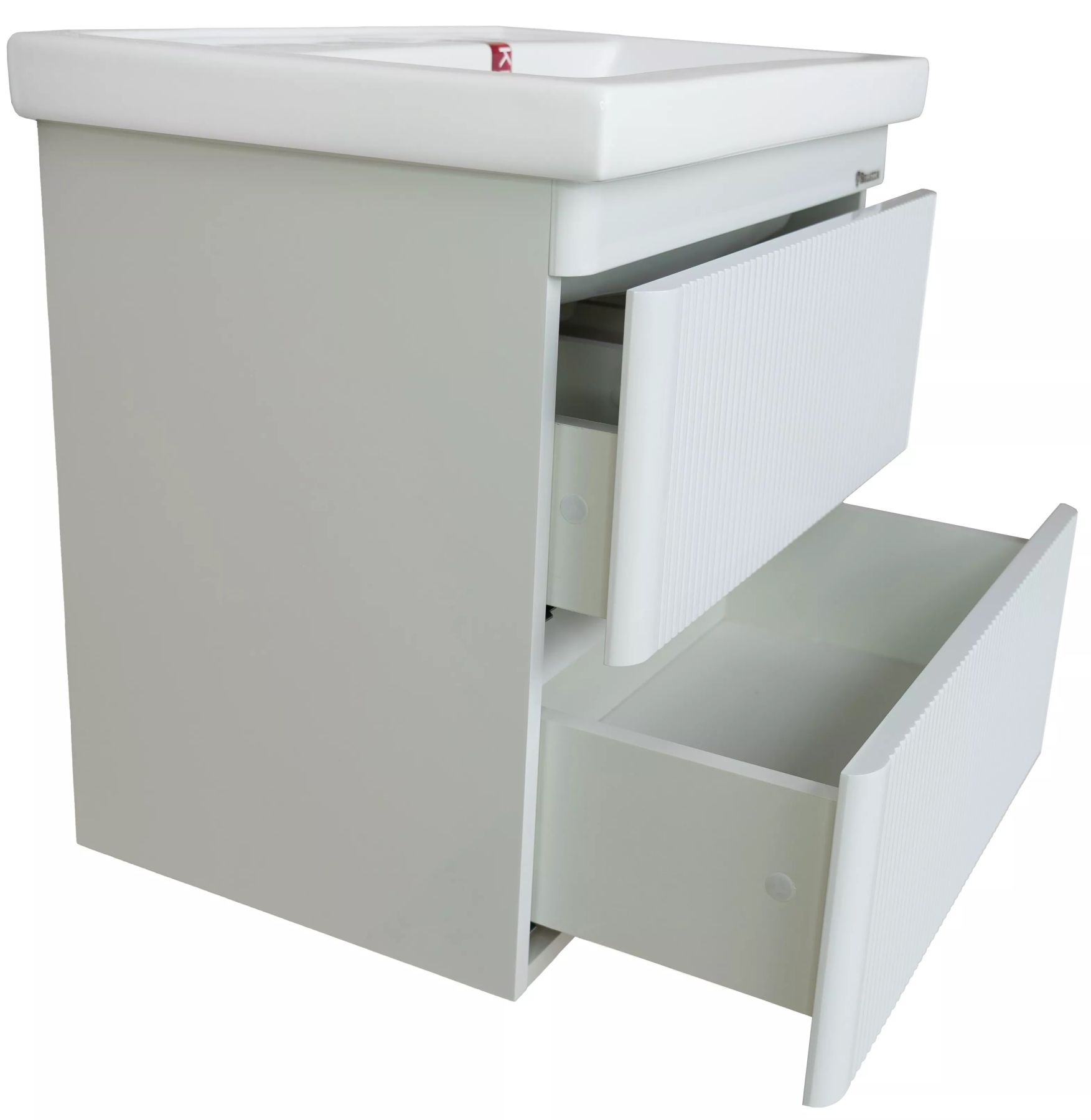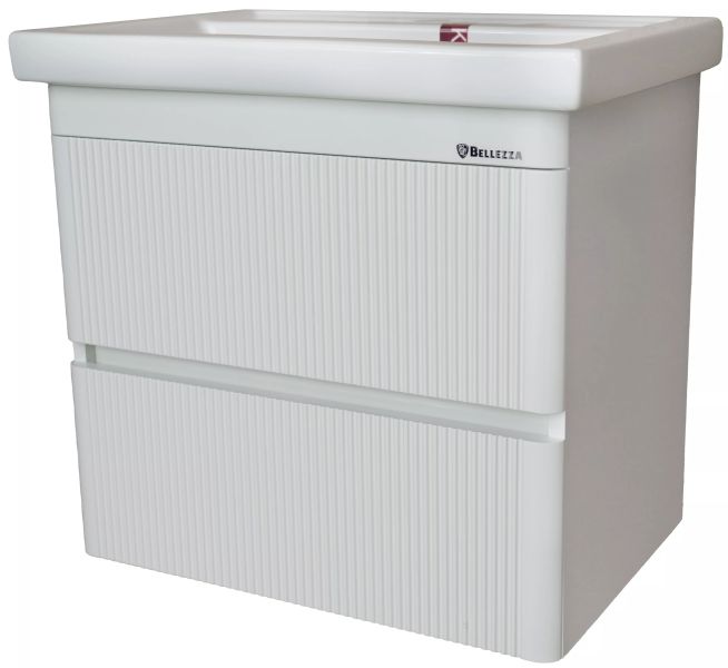 Подвесная тумба Bellezza Эмилия шириной 60 см в белом глянцевом исполнении — это идеальное решение для малогабаритных ванных комнат, где важны рациональное использование пространства, современный дизайн и практичность. Модель с интегрированной раковиной и двумя выдвижными ящиками сочетает в себе легкость визуального восприятия, функциональность и устойчивость к влажной среде.