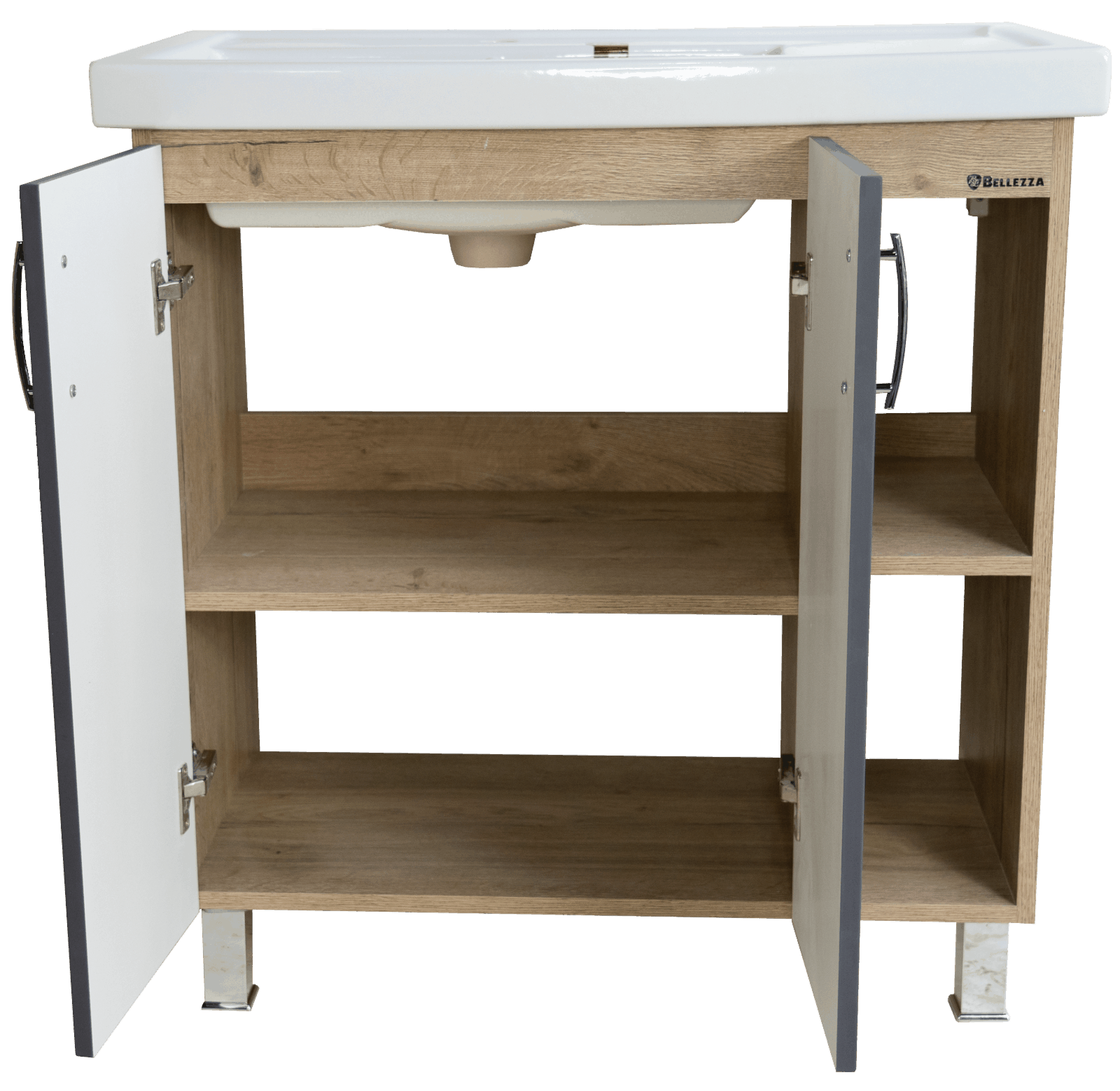Тумба под раковину Bellezza Рона 80см серая/светлое дерево 00000011749