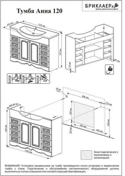 Тумба под раковину Бриклаер Анна 4627125411458 120 см белый