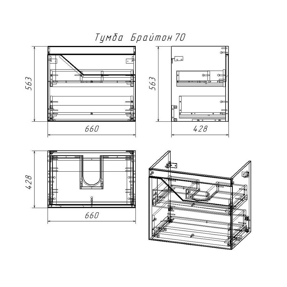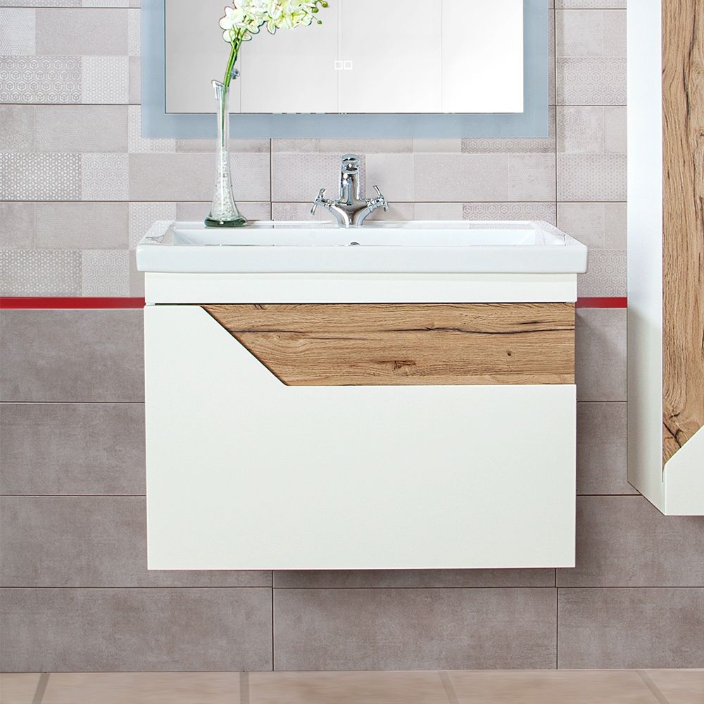 Тумба под раковину Бриклаер Брайтон 4627125415807 70 см белый/дуб