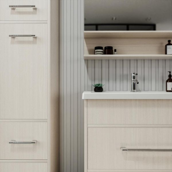Удобная система хранения позволяет размещать все необходимое для гигиенических процедур, а её продуманные размеры отлично вписываются даже в небольшие помещения. Стильные ручки и элегантные фасады придают тумбе особый шарм, а разнообразие цветовых решений позволит выбрать модель, соответствующую любому интерьеру – от классического до модерн.