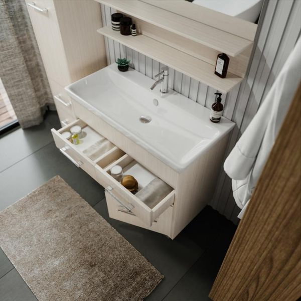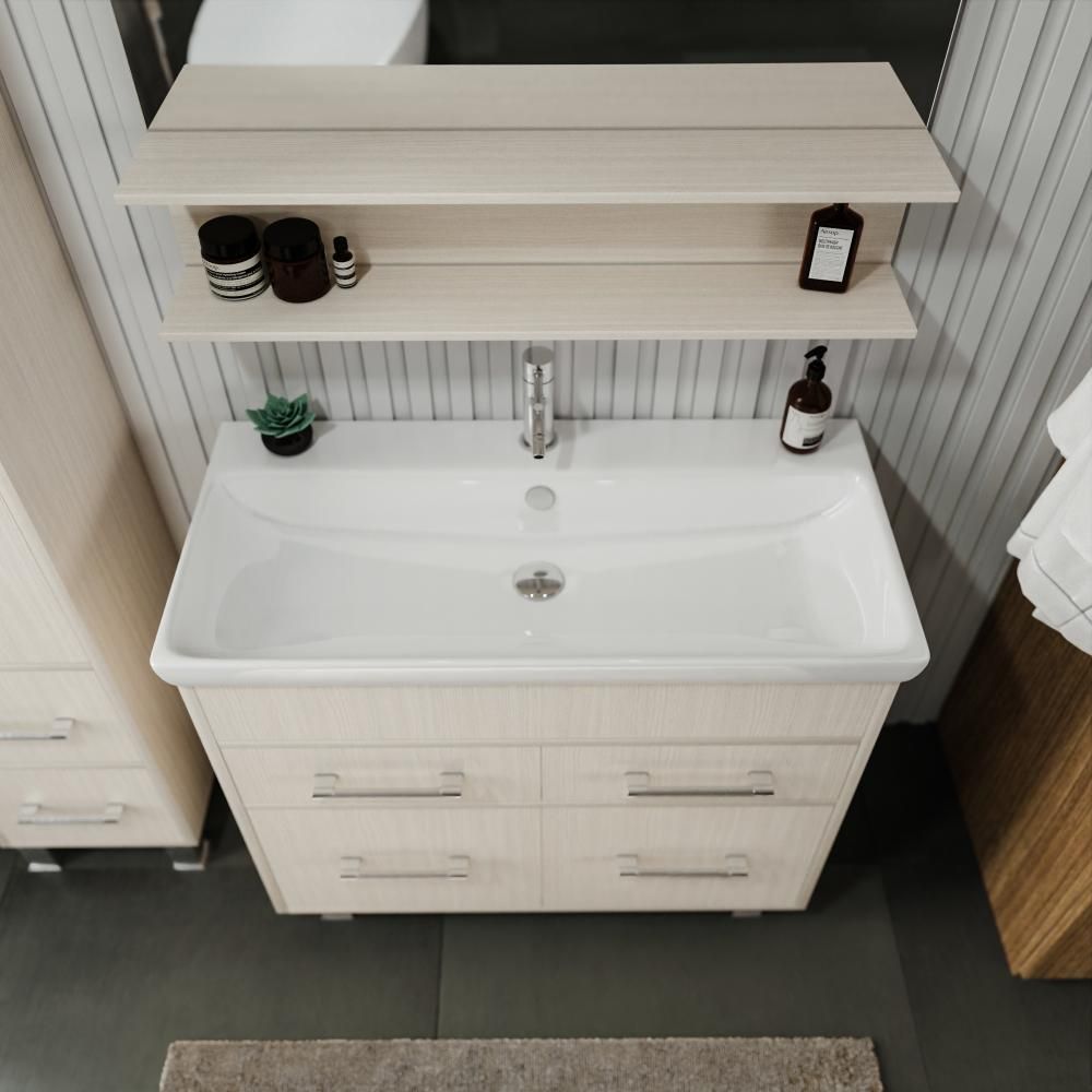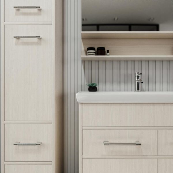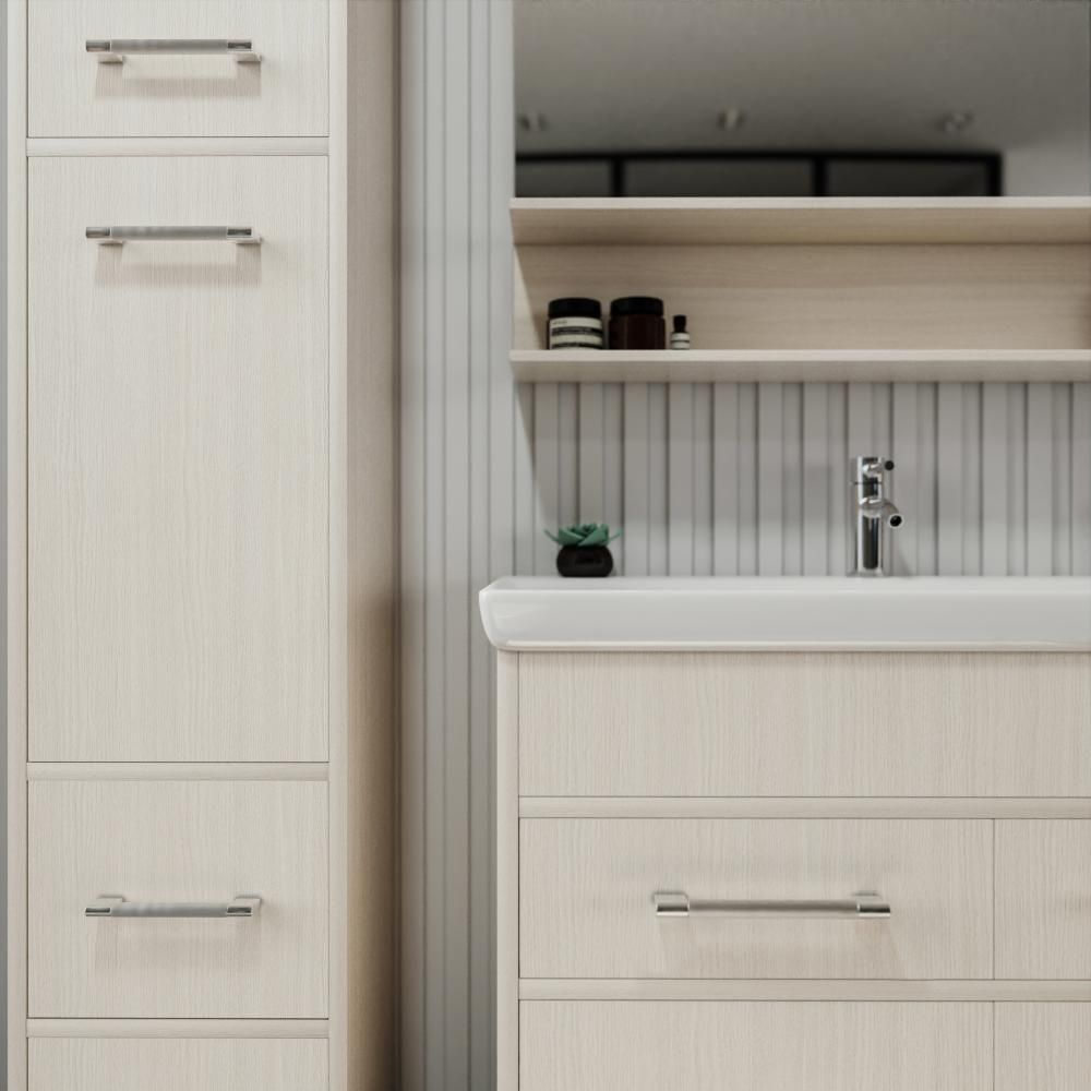 Удобная система хранения позволяет размещать все необходимое для гигиенических процедур, а её продуманные размеры отлично вписываются даже в небольшие помещения. Стильные ручки и элегантные фасады придают тумбе особый шарм, а разнообразие цветовых решений позволит выбрать модель, соответствующую любому интерьеру – от классического до модерн.