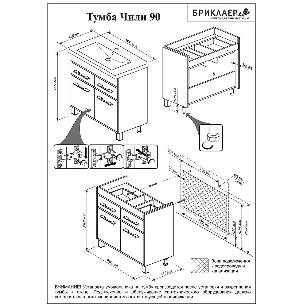 Тумба под раковину Бриклаер Чили 4627125415029 90 см светлая лиственница