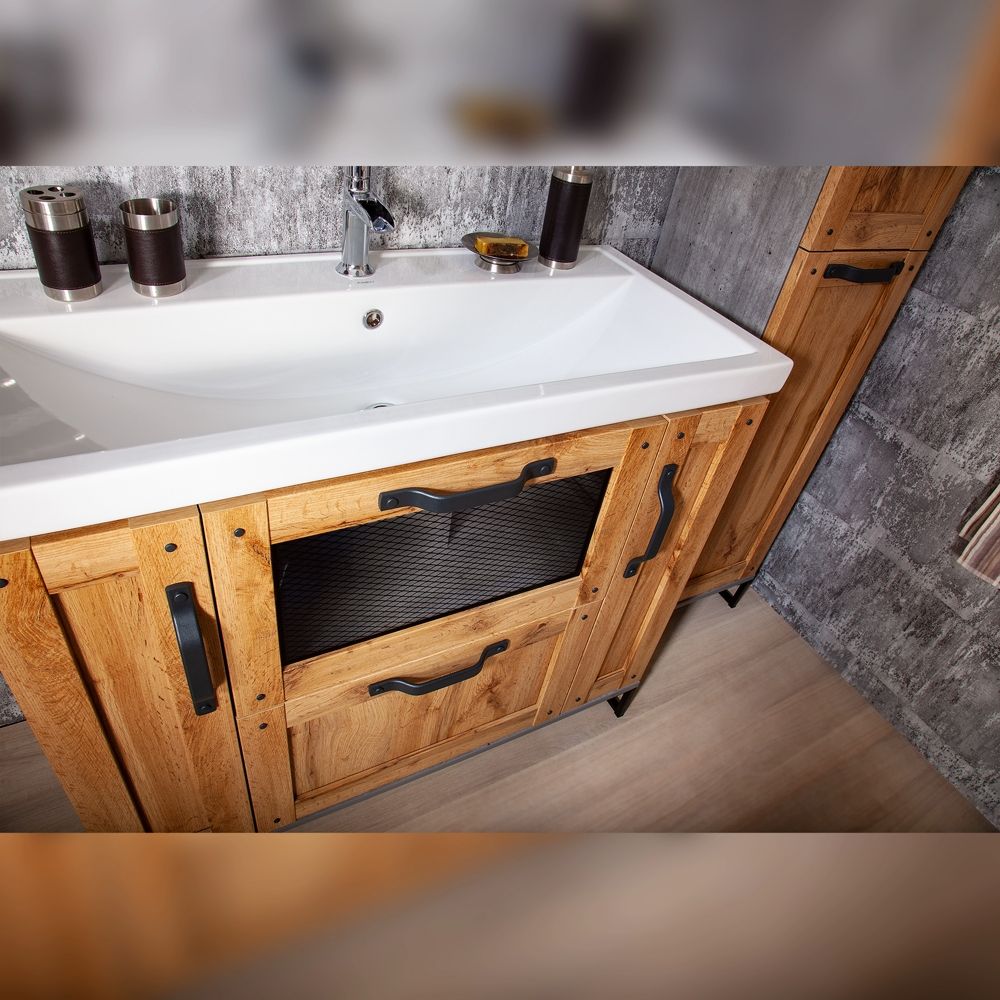 Удобная система хранения позволяет размещать все необходимое для гигиенических процедур, а её продуманные размеры отлично вписываются даже в небольшие помещения. Стильные ручки и элегантные фасады придают тумбе особый шарм, а разнообразие цветовых решений позволит выбрать модель, соответствующую любому интерьеру – от классического до модерн.