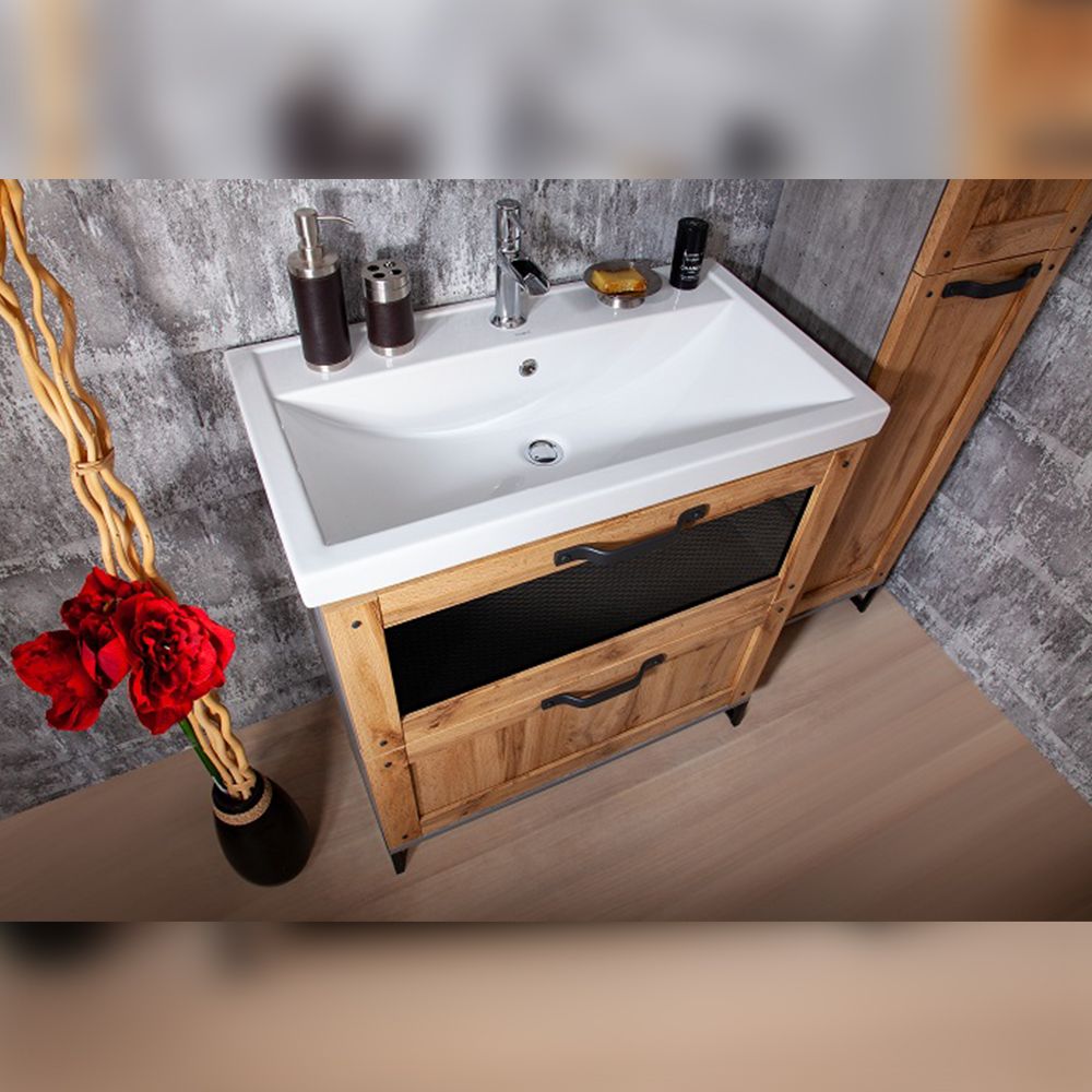 Удобная система хранения позволяет размещать все необходимое для гигиенических процедур, а её продуманные размеры отлично вписываются даже в небольшие помещения. Стильные ручки и элегантные фасады придают тумбе особый шарм, а разнообразие цветовых решений позволит выбрать модель, соответствующую любому интерьеру – от классического до модерн.