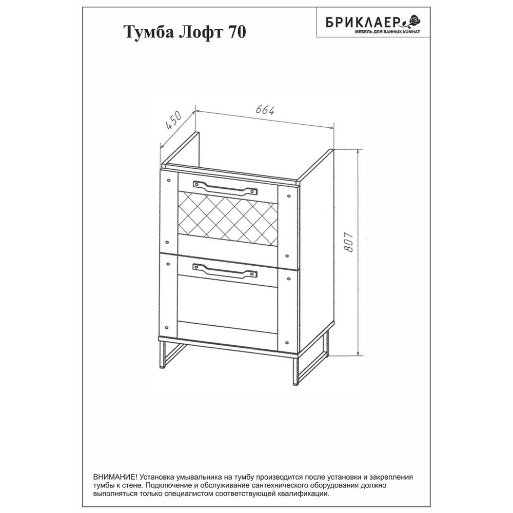 Тумба под раковину Бриклаер Лофт 4627125413407 70 см метрополитен грей
