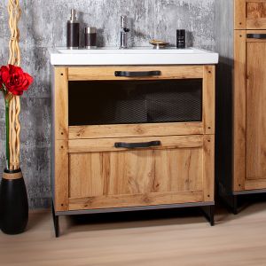 Удобная система хранения позволяет размещать все необходимое для гигиенических процедур, а её продуманные размеры отлично вписываются даже в небольшие помещения. Стильные ручки и элегантные фасады придают тумбе особый шарм, а разнообразие цветовых решений позволит выбрать модель, соответствующую любому интерьеру – от классического до модерн.