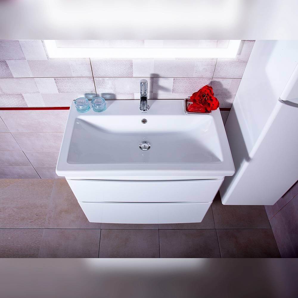 Тумба под раковину Бриклаер Вега 4627125414077 с двумя ящиками 80 см белый