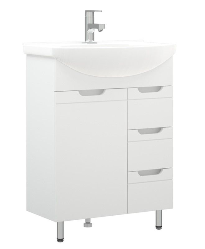 Тумба под раковину Corozo 65 Z3, 65 см, цвет белый, SD-00001509Коллекция мебели для ванных комнат "ЛЕЯ" создана для тех, кто ценит простоту форм, сочетание округлых и прямых линий, удобство эксплуатации. У мебели коллекции «ЛЕЯ» корпус выполнен из ЛДСП, фасады - из влагостойкой плиты МДФ, покрытие – пленка ПВХ. В верхней части стойки расположены полки, в нижней части - высокие боковины. Фурнитура с лицевой стороны фасадов отсутствует, вместо нее предусмотрены интегрированные ручки с декоративной полосой тонкой фрезеровки. Высота ящика по 110 мм. Тумба подходит под раковину Corozo Элеганс 65 см. Раковина приобретается отдельно.