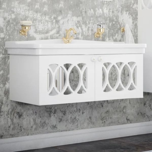 Тумба для комплекта Corozo Таормина 105 великолепно впишется в дизайн любой ванной комнаты, будь то компактная ванная в многоэтажном доме или большой санузел в загородном коттедже. Подвесной способ установки дает возможность не только визуально увеличить пространство, но и обеспечивает быстрый и удобный доступ для уборки.Компания Corozo использует при производстве высококачественные водоотталкивающие материалы (МДФ), соответствующие всем необходимым требованиям безопасности. Серия Таормина отличается превосходным дизайном с соблюдением всех ключевых элементов стиля ретро. Основным цветом, в котором выполнена тумба под раковину Corozo Таормина является белый, отлично подходящий большинству дизайнерских решений. Тумба под раковину предусматривает удобную и вместительную систему хранения, состоящую из дверей. Качественные доводчики позволяют обеспечить мягкое и тихое закрывание. Важные размеры товара: ширина 99 см, глубина 46.9 см, высота 40 см.Страной бренда Corozo является Россия, все товары производятся с выполнением соответствующих стандартов качества, что позволяет быть полностью уверенными в долговечности и надежности. Тумба для комплекта Corozo Таормина 105 поможет сделать уютным любой интерьер и создать идеальную ванную комнату.