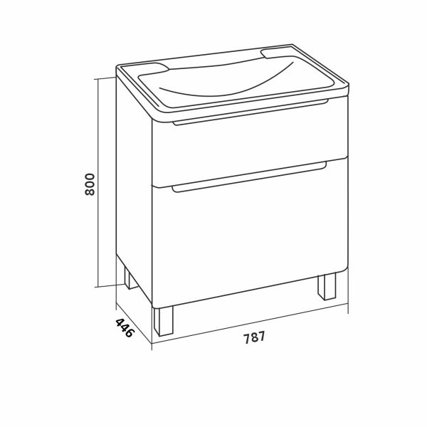 Тумба выполнена из влагостойкого МДФ покрытая белой глянцевой краской, устойчивая к перепадам температур и высокой влажности, крепится к стене.
