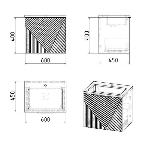 Корпус и фасады выполнены из влагостойкого МДФ, покрытого высококачественной матовой краской. Это гарантирует устойчивость к влаге и долговечность при ежедневном использовании в условиях повышенной влажности.Размеры: