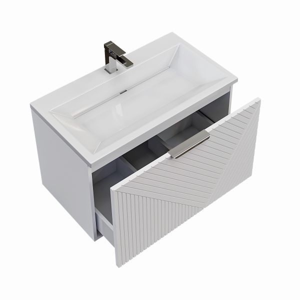 Корпус и фасады выполнены из влагостойкого МДФ, покрытого высококачественной матовой краской. Это гарантирует устойчивость к влаге и долговечность при ежедневном использовании в условиях повышенной влажности.Размеры:
