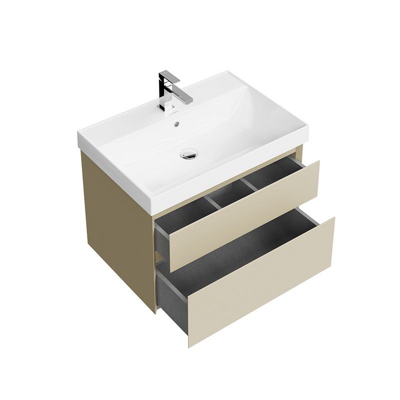 Подвесная тумба в цвете лимо (бежевая) матовая с двумя выдвижными ящиками. Ящики закрываются плавно и бесшумно. Внутренняя отделка ящиков напоминает фактуру ткани. Сочетается с раковиной CUBO шириной 70 см Изделия из ДСП, МДФ, а также изделия из металла требуют правильного ухода и эксплуатации. При установке и дальнейшей эксплуатации изделий, следует обратить внимание на их расположение в ванной комнате: они должны быть установлены вдали от источников тепла; температура воздуха в помещении должна быть в пределах +2 — +25 °С, а влажность воздуха не должна превышать 45%-70%. Во избежание появления пятен, отслоения облицовки и коррозии металла, не допускать скопления воды и жидкостей на поверхностях изделий и как можно скорее протереть сухой мягкой тканью участок, контактирующий с жидкостью. Соблюдайте правила ухода за изделиями из металла и они прослужат Вам очень долго.