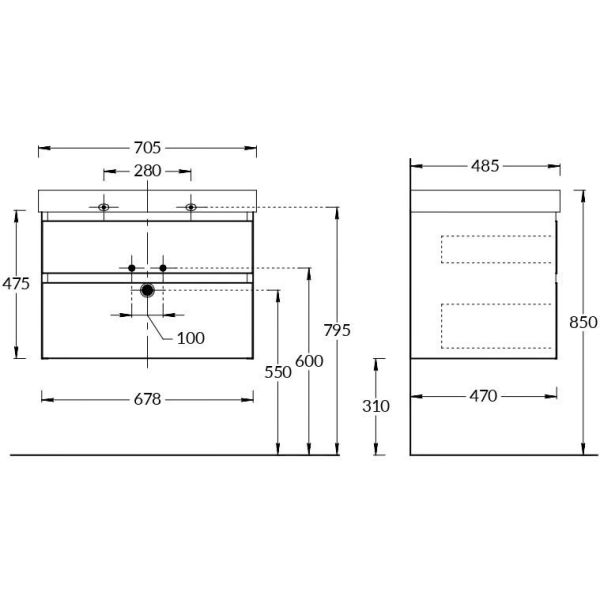 Тумба под раковину Kerama Marazzi Cubo CUB.70.2\LIM 70 см лимо матовый