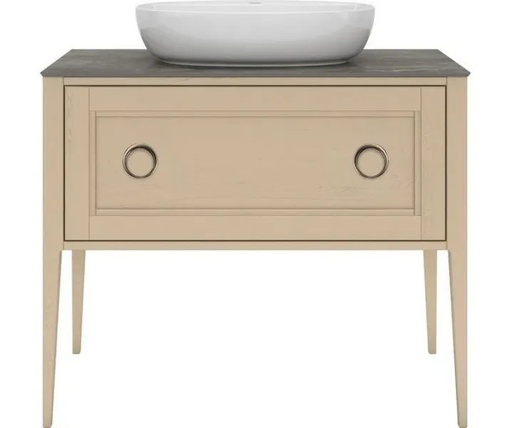 Напольная тумба с одним выдвижным и одним внутренним ящиками выполнена из массива ясеня с отделкой «открытая пора». Вместительный ящик с плавным закрыванием украшен двумя крупными ручками. Сочетается с керамическими столешницами PLAZA Classic шириной 100 см. Подходит для установки раковин с типом монтажа «накладная на столешницу» и «встраиваемая сверху».