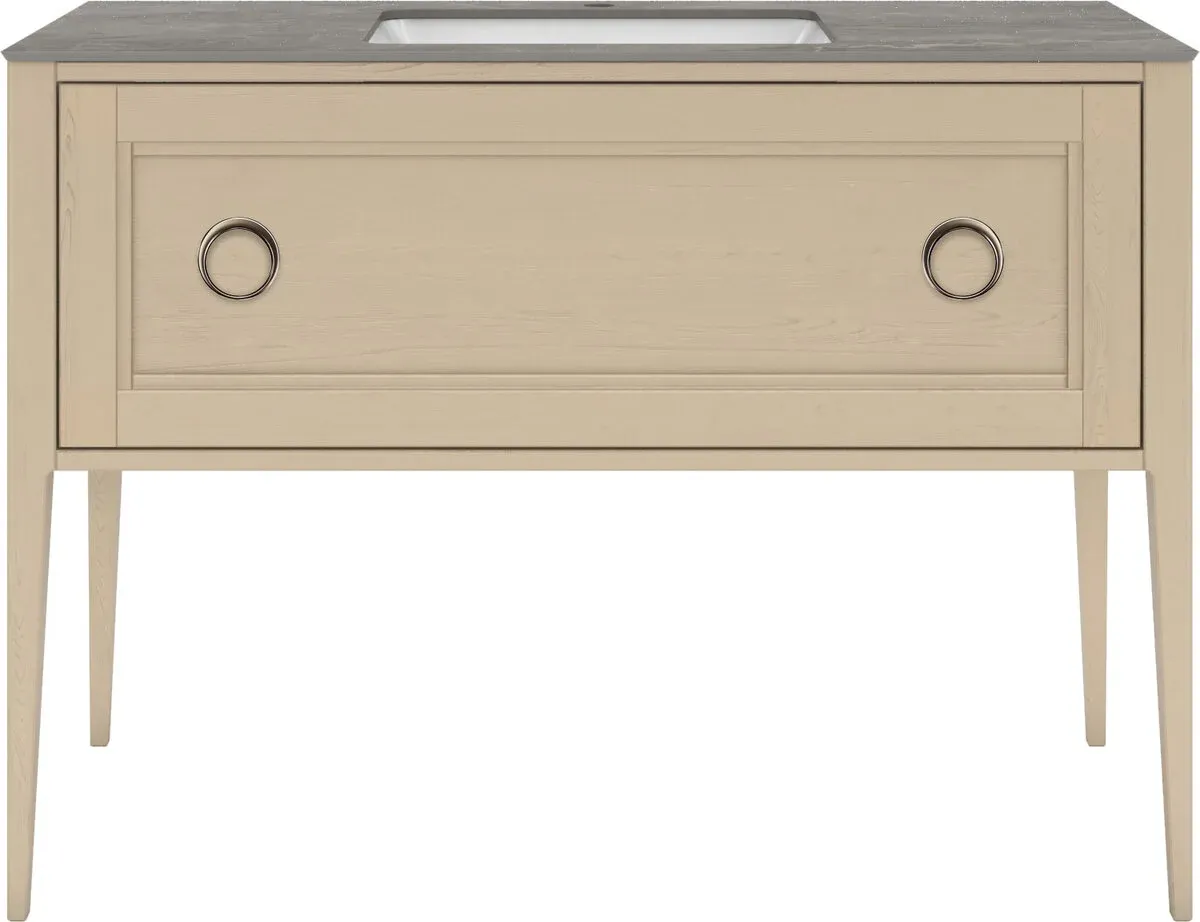 Напольная тумба с одним выдвижным и одним внутренним ящиками выполнена из массива ясеня с отделкой «открытая пора». Вместительный ящик с плавным закрыванием украшен двумя крупными ручками. Сочетается с керамическими столешницами PLAZA Classic шириной 120 см. Подходит для установки раковин с типом монтажа «накладная на столешницу» и «встраиваемая сверху».