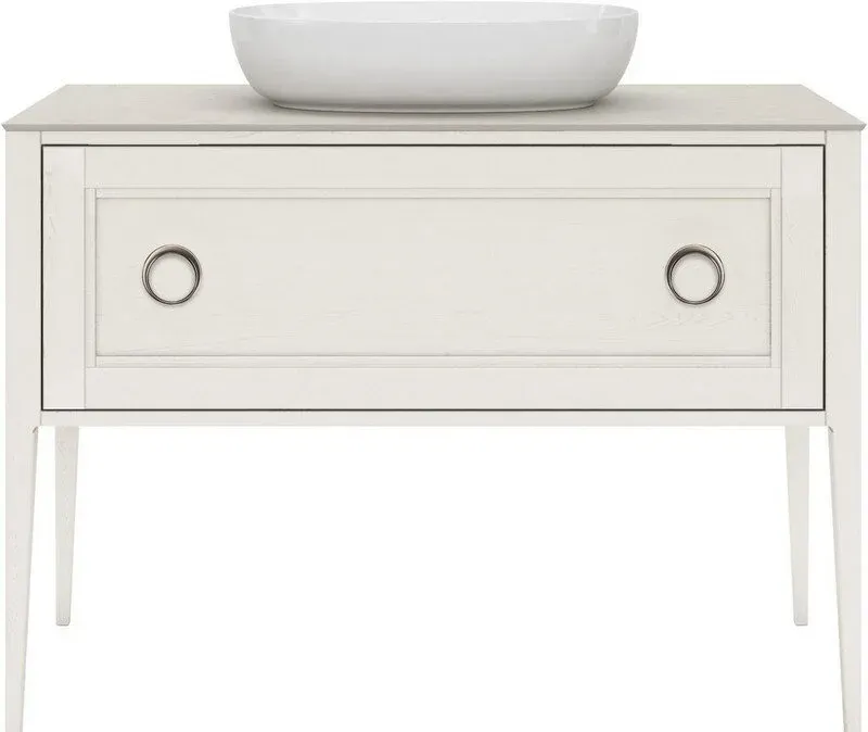 Напольная тумба с одним выдвижным и одним внутренним ящиками выполнена из массива ясеня с отделкой «открытая пора». Вместительный ящик с плавным закрыванием украшен двумя крупными ручками. Сочетается с керамическими столешницами PLAZA Classic шириной 120 см. Подходит для установки раковин с типом монтажа «накладная на столешницу» и «встраиваемая сверху».