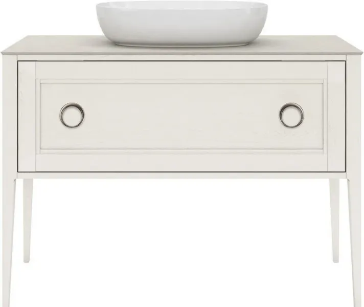 Напольная тумба с одним выдвижным ящиком выполнена из массива ясеня с отделкой «открытая пора». Вместительный ящик с плавным закрыванием украшен двумя крупными ручками. Сочетается с керамическими столешницами PLAZA Classic шириной 120 см. Подходит для установки раковин с типом монтажа «встраиваемая снизу».