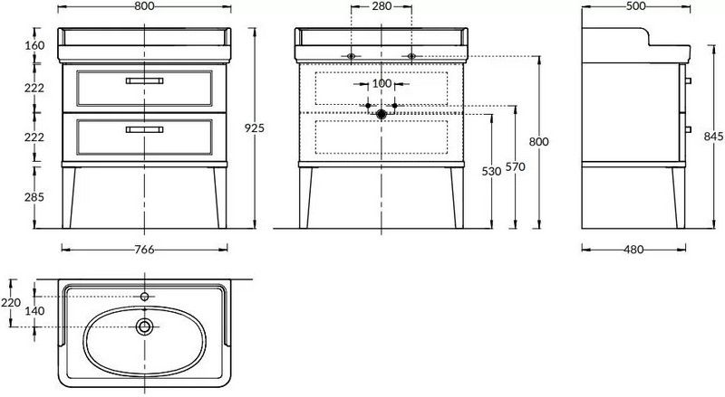 В варианте с двумя ящиками у тумбы POMPEI появляются две высокие ножки. Фасад мебели выполнен со скруглениями по двум сторонам. Вместительный ящик тумбы внутри сделан с отделкой «лён антрацит», характерной для большинства новых моделей мебели KERAMA MARAZZI.