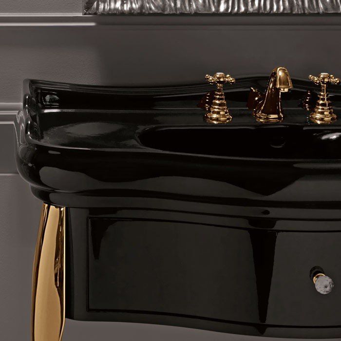 Тумба под раковину Kerasan Retro 7363K4 напольная черная золото купить