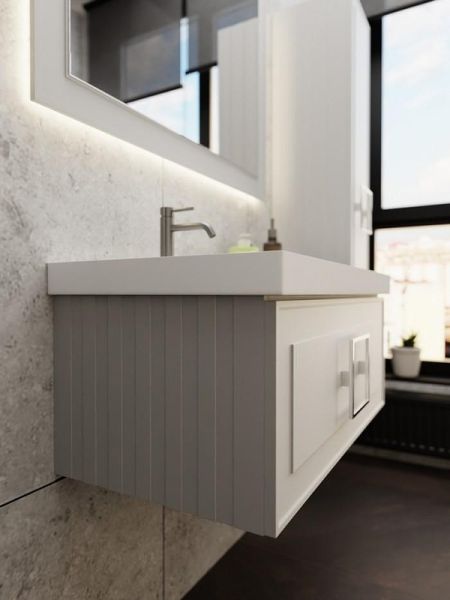 С мебелью коллекции Cubo решить задачу будет проще. Матовые фасады подвесных тумб и столешницы в различных цветовых гаммах помогут даже самому взыскательному покупателю создать индивидуальный интерьер. Изящные и утонченные фрезерованные фасады и боковины тумб станут украшением любой ванной комнаты. К данной тумбе необходимо выбрать один из трех цветов ручки (FNC-04-CUB-B-168- белая/FNC-04-CUB-N-168 - черная/FNC-04-CUB-C-168 - хром), ручка включена в стоимость тумбы. Возможна установка мебельной раковины или любой раковины-чаши со столешницей.