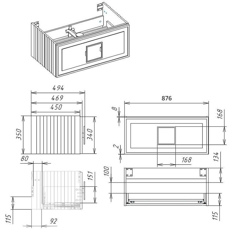 Габариты корпуса тумбы (ШхВхГ): 876х350х494 мм.
